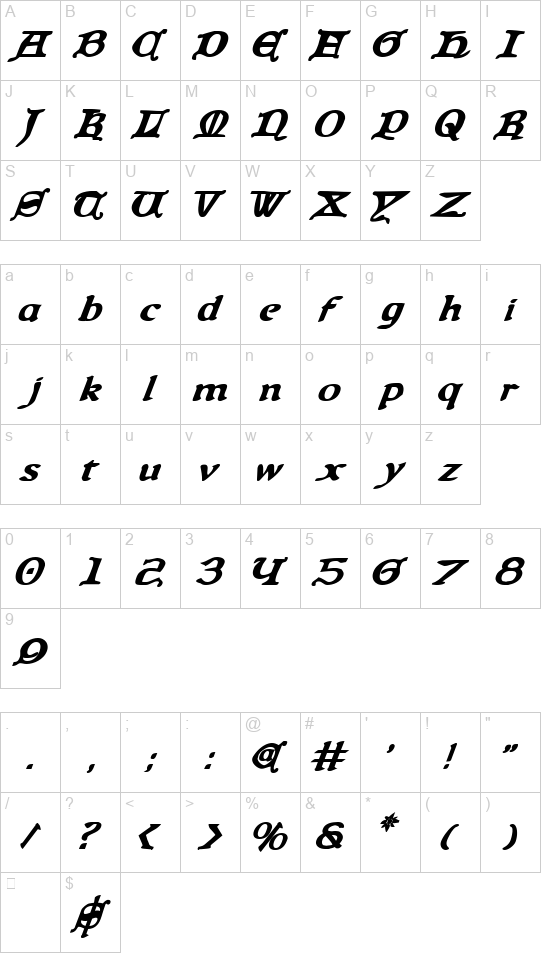 Character Mapspecimen sheetwaterfall