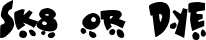 Sk8 or Dye by Pizzadude · Published October 7, 2012 · Updated January 26, 2013 Sk8 or Dye Font SK8ORDYE.ttf Free for personal use - 1 font file Download 617 downloads Character Mapspecimen sheetwaterfallSK8ORDYE.ttf Sk8 or Dye font Sending User Review 0 (0 votes)